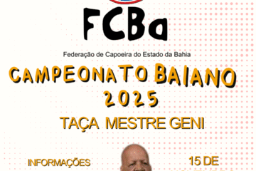 Campeonato Baiano de Capoeira 2025 – Taça Mestre Geni A Federação de Capoeira do Estado da Bahia (FCBA) convida todos os grupos, mestres, professores, instrutores e atletas a participarem do Campeonato Baiano de Capoeira 2025 – Taça Mestre Geni, que acontecerá no dia 15 de novembro de 2025, na ASBAC Ler mais…